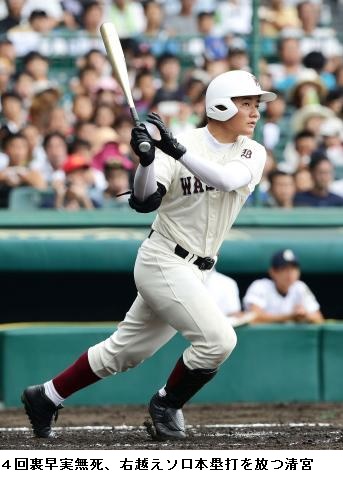 早稲田実は、1年生の清宮が2試合連続となる本塁打を放つなど、打力で九州国際大付(福岡)を圧倒。関東一は、九回にオコエが左越え2点本塁打を放って興南(沖縄)に競り勝った。