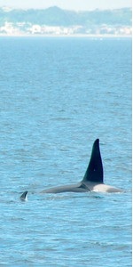 二十五日午前十時すぎ、横浜海上保安部の巡視艇が、千葉県富津市にある金谷港の西約六キロでシャチらしき群れを確認=写真、第三管区海上保安本部提供。翌二十六日午前十一時ごろには釣り船の乗組員から同港の南西約五キロで「シャチ三、四頭が海を泳いでいる」と通報があった。 (東京新聞 2015年5月27日 朝刊)