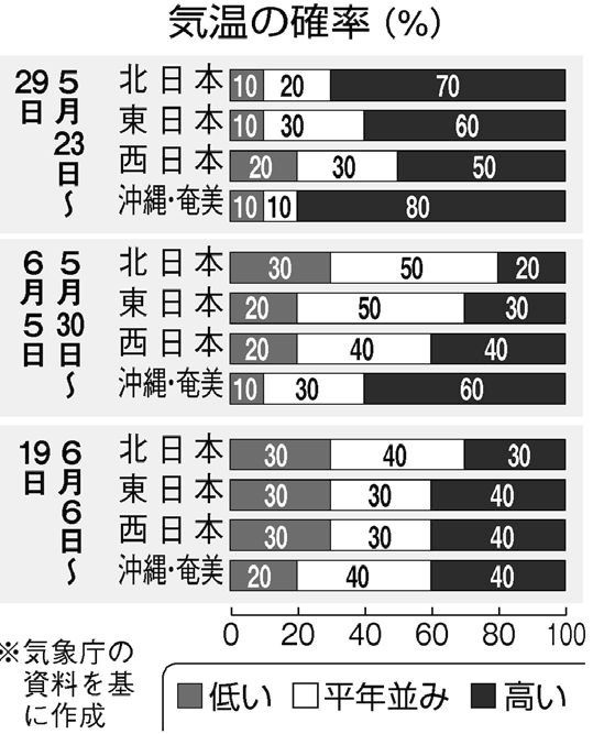 同庁は「少なくとも今後1週間は、全国的に高温・少雨・多照が続く。6月に入っても平年に比べて晴れの日が全国的に多く、高温・少雨で推移する」(気候情報課)と見通す。