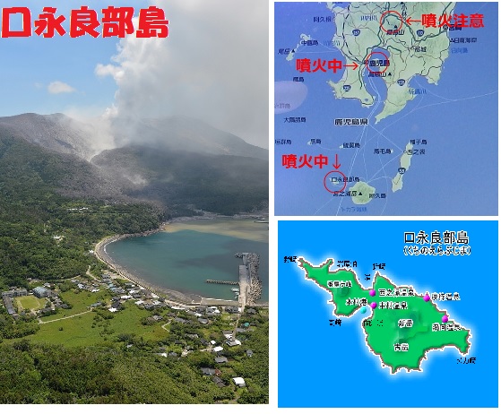 口永良部島は同じ鹿児島県の桜島を中心とした九州、南西諸島の活動的な火山群の一つに数えられる。