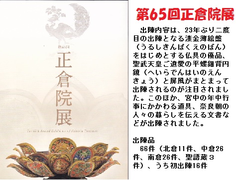 彼は毎年、正倉院展に出かけては正倉院展の図録を送ってくれていましたが、昨年の第65回正倉院展の図録は、本人からの添え書は無く、奈良国立博物館から直送されてきました。きっと、彼は出かけることが出来ず、奈良国立博物館へ直送を依頼したものと思われます。