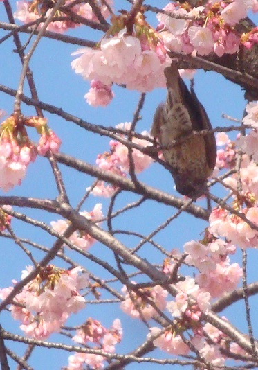 大寒桜はまだ花を付けてはいますが、葉桜になりつつあります。ここは中国の観光客が多く、大寒桜をバックに写真を撮る客がいっぱいで、遊歩道を抜けるには、人を分けて歩かなければなりません。
