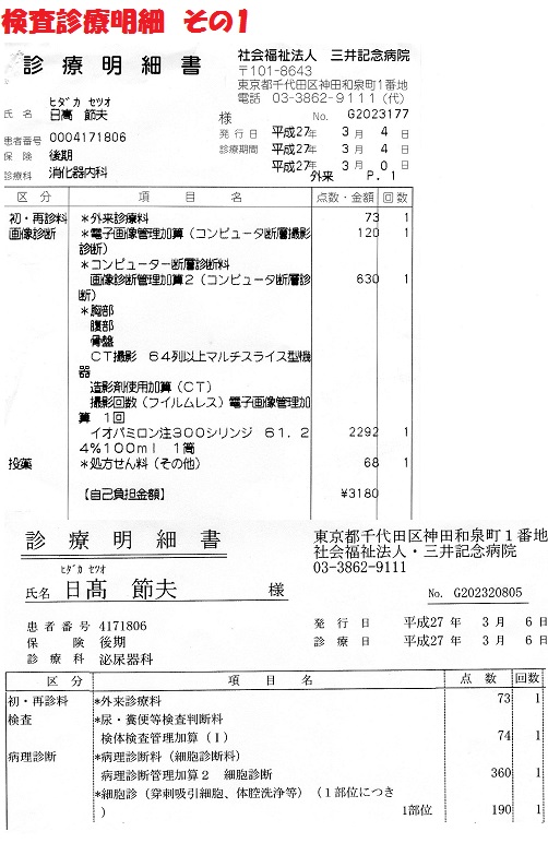 明日から、大腸内視鏡検査のため三井記念病院に入院します。検査で以上が無ければ13日に胃癌の再手術ということになりますが、病変があれば、一旦退院して、処置を考えるとのことです。