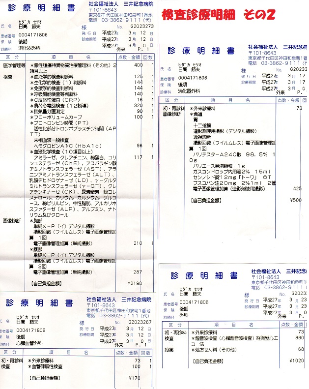 このほかに、血液検査・心電図検査・肺活量検査・レントゲン撮影(胸部&腹部)をして昼過ぎに帰宅しました。まあ、検査検査でまっこと厭になってしまいますが、3月17日(火)には、胃透視の検査を受けるように言われています。