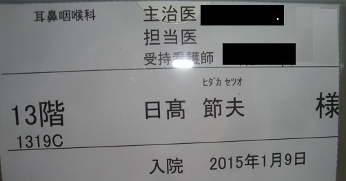 1月6日(火)午前にテレビを見ていると突然右耳が聞こえなくなりました。1月8日(木)、浅草寺病院で定期健診。右耳が急に聞こえなくなったことを話すと出来るだけはやく耳鼻科で見てもらったほうがいいということで、浅草寺病院ではその日は休診なので、翌9日(金)朝7時半に耳鼻科へ急行しました。3番目の回診で、色々の検査の結果、ステロイドという強い薬も使うので、3日からの切除手術との関係もあり三井記念病院の耳鼻科で診てもらったほうが良いとのことで、急遽紹介状を書いてもらいました。30分以内に三井記念病院にいってくれとのことでした。