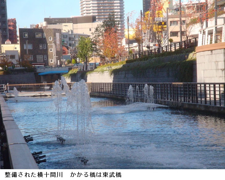 朝食後、8時45分出かけました。気温は12℃で外気に触れると肌寒く感じます。昨夜来の雨が嘘のようで外は雲ひとつ無い小春日和です。リバーサイドのプール脇にある古川市想定の銀杏の木が黄葉したようです。桜橋を渡って桜橋通りを付ききり、京成橋にでます。横十間川のテラス沿いに東武橋まで歩いてみました。横十間川はスカイツリー建設と同時にスッカリ整備され一変しました。京成橋と東武橋の中間辺りにスカイツリーに入るための「おしなり橋」が作られたようです。横十間川の北側は押上、南側は業平町それぞれの文字を1字ずつとって「おしなり」としたようです。