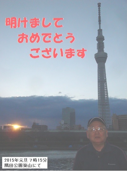 今朝は6時半から隅田川縁(べり)に出てみました。初日の出を見るつもりでしたが、地平近くは黒い雲に覆われて、ちらりと見えただけでした。
