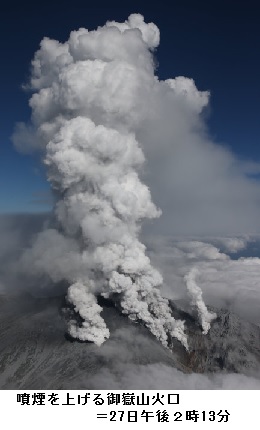 死者47人、戦後最悪の火山災害に 山頂付近で噴石直撃か 御嶽山噴火 ―― 長野、岐阜両県にまたがる御嶽山(おんたけさん)の噴火で、長野県警は1日、新たに35人の死亡が確認されたと発表、これまでの判明分と合わせて死者は計47人となった。国内の火山災害としては、平成3年に行方不明者を含め43人が犠牲となった長崎県の雲仙普賢岳を上回り、戦後最悪の被害となった。/死者のうち、これまでに身元が確認されたのは15人。1日は新たに神奈川県小田原市の会社員、佐野秋乃さん(36)ら3人の身元が確認された。/長野県警によると9月30日までに死亡が確認された12人を検視した結果、いずれも損傷死と判明。多くは噴石が頭や首、体を直撃したことによる外傷性ショックなどが原因とみられ、火山ガス中毒や、火山灰による窒息で死亡した人はいなかった。重軽傷は69人。/東京大地震研究所は、今回の噴火で飛散した噴石は火口から少なくとも1キロ離れた地点まで飛んだとの分析結果を発表した。頂上の御嶽神社周辺では、10センチ以上の噴石が時速300キロ弱で降り注いだとみられる。分析を行った同研究所の金子隆之助教(火山地質学)は「直撃すれば相当の衝撃だっただろう」と話している。/長野県警や消防、陸上自衛隊は1日、心肺停止状態で山頂付近に取り残されている登山者らの救助・捜索活動を再開。同日夕までにヘリコプターなどで心肺停止状態の35人を麓に搬送、全員の死亡を確認した。これまでに発見されていた登山者らは、この日の捜索で全員が麓に搬送された。/1日は捜索隊の輸送に陸自のCH47大型ヘリコプターを初めて投入。現場は火山活動の活発さを評価する指標の火山性微動が続いているが、1日の捜索実施を決めた長野県などは「振れ幅は比較的高いままだが、安定し突然大きくなる様子はない」と判断した。/気象庁によると9月29日以降、火山性微動の振動幅が噴火当日の同27日夜と同じ水準に拡大。二酸化硫黄の放出量も増え、突発的な水蒸気噴出などの振動で空気が揺れる空振の発生も確認され、同庁は二次災害の危険性を指摘している。 〈ZAKZAK by 夕刊フジ2014.10.02)