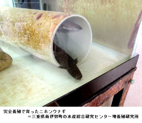 ウナギ、完全養殖で救え 孵化は成功、ただし値段は… ―― 絶滅の恐れがあるとして、ニホンウナギが国際自然保護連合(IUCN)のレッドリストに載ってから初の「土用の丑(うし)の日」を29日に迎える。日本の食文化にも欠かせない希少生物の保護や増殖に取り組む最前線の現場を訪ねた。/青い光に包まれたひんやりした実験室の水槽で、ニホンウナギの幼生がゆらゆら。孵化(ふか)したばかりで体長は数センチだが、サメの卵などを食べて体長5~6センチ、親と同じ形の稚魚(シラスウナギ)に育つ。三重県にある水産総合研究センター増養殖研究所。4年前、人工授精から育ったウナギが卵を産み、孵化する「完全養殖」に世界で初めて成功した。/ニホンウナギは日本から約2千キロ離れた太平洋で産卵し、川で5~10年ほど生きるが、海での暮らしはよくわかっていない。漁獲量が不安定な天然の稚魚を使わない完全養殖は夢の技術だ。昨年度は約400匹が稚魚まで育った。研究の第一人者、田中秀樹・ウナギ量産研究グループ長は「水槽さえ増やせば人工授精から育った稚魚の出荷は今でもできる」と言う。/ただ、値段は天然の数十倍。親ウナギはホルモンを与えないと卵を産むまで成熟しない上、生まれて稚魚になるまで長くて700日と手間がかかる。稚魚に育つ生存率も1割以下だ。/それでも4年間で餌やホルモンの開発が進み、研究の舞台も「実験室」から「工場」に移りつつある。今年2月、静岡県にある千リットルの大型水槽で稚魚の飼育に成功したと発表。生存率は実験室よりさらに低い1%ほどだが、今も300匹余りが育つ。今後、民間の技術協力で水槽を増やす。/ 「研究すればするほど稚魚を大量に飼う難しさが分かってきた」と話す田中さん。天然の稚魚を守るためにも、将来、養殖に使う稚魚の一部を人工生産で補うことを目指している。