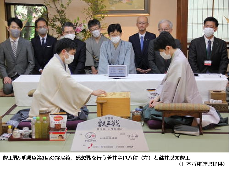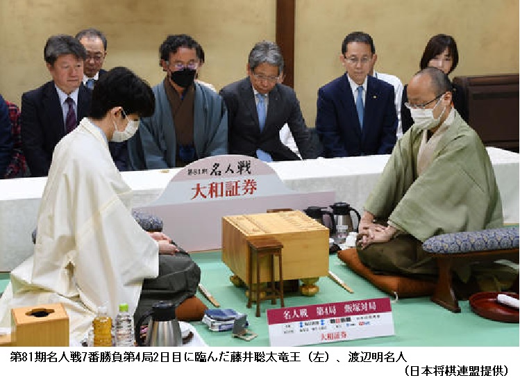 シリーズ成績を3勝1敗とし、最年少名人&7冠にあと1勝とした。4連覇を狙う渡辺はかど番に追い込まれた。第5局は31日から長野県高山村「緑霞山宿 藤井荘」で行われる。