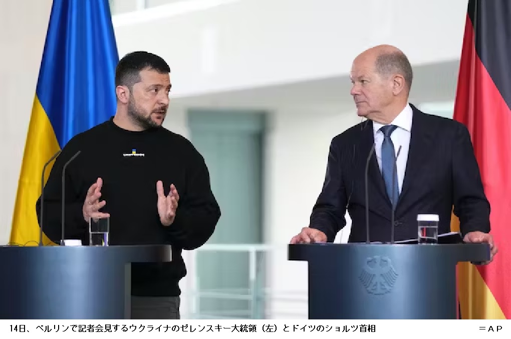 ぜレンスキー氏は和平交渉についても意見を交わしたと述べ「ショルツ首相と同じ立場にある」と説明した。ショルツ氏は「ウクライナには和平の準備があるが、単なる戦闘の凍結やロシア側が一方的に形成する和平のことではない」と訴えた。