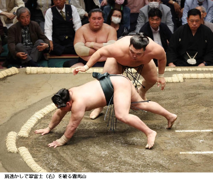 先場所、12勝3敗で初優勝を飾り、今場所大関とりがかかる関脇霧馬山は、西前頭筆頭の翠富士を肩すかしで破り、白星発進した。