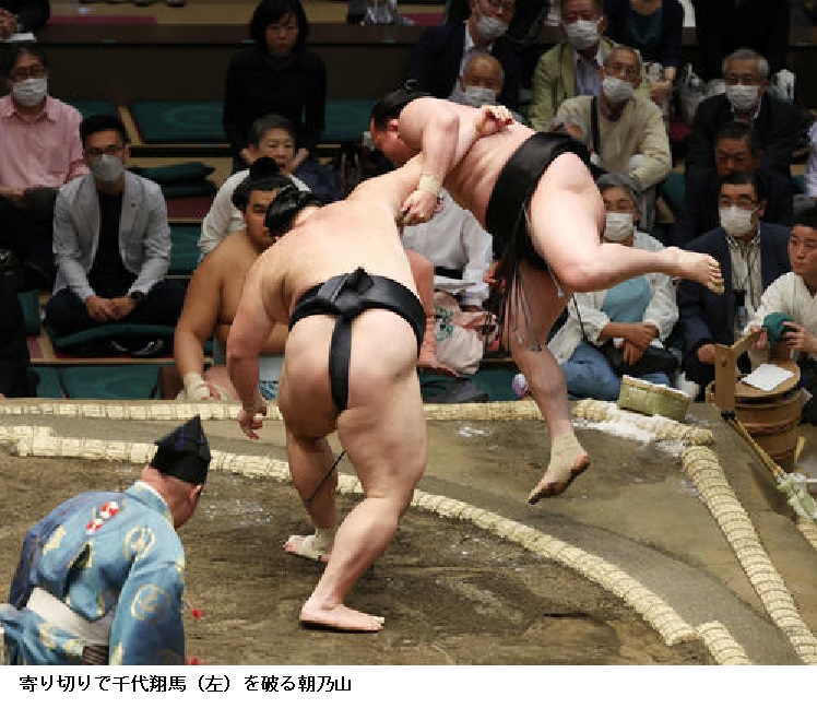 幕内に復帰の朝乃山は、千代翔馬を得意の右四つから力強く寄り切った。 日刊スポーツ 2023年5月14日18時3分]