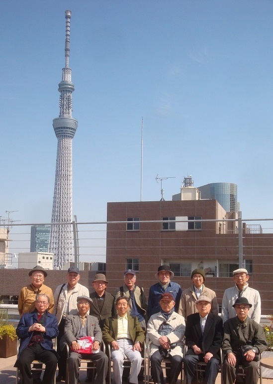 12時半過ぎに浅草に到着、1時間の自由行動とし、それぞれに隅田公園の桜を楽しんだようです。13時30分、EKIMISE(松屋百貨店)屋上に集合、屋上にいたご婦人にシャッターを押してもらい記念撮影。予約した時刻より30分早く7階の天津飯店で宴会、それぞれに昔の思い出話に花を咲かせていました。3時30分頃散会しましたが、数名の帰宅者が会っただけで、流れは「鉢の木」でお駄弁りの続きを楽しみました。