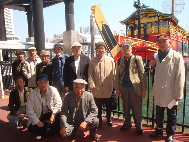 昨日は、浅草で水門(みなと)会関東支部のお花見。集合場所は日の出桟橋です。9時35分の水上バスで日の出桟橋まで、皆さんをお迎えに行きました。10時半ごろ日の出桟橋に着きましたが、すでに5,6人の爺仲間が集まっていました。11時40分発の水上バスで、浅草に向かいました。此処2,3日菜種梅雨で強風も吹いたので、葉桜になってしまうことを心配していましたが、船から見る両岸に咲く桜は結構見栄えがしました。