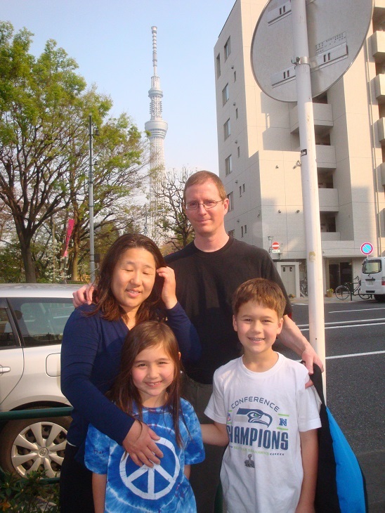 昨日の夕刻4時頃、シアトル在住の塾友babaimoこと、hitomi女史が訪ねてくれました。入院されているお父上のお見舞いに、家族で来日したのだということでした。突然の訪問で婆様は留守でしたし、おもてなしも出来ませんでしたが、今から親戚の方とも会わなければならないということで、玄関先で話しただけでした。旦那は前と同じくアマゾンにお勤め、息子さんは6年生、娘さんは3年生になるとのことでした。石浜通りに出て、スカイツリーをバックに写真を撮ってお別れしました。