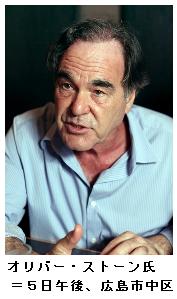 原爆投下68年 オリバー・ストーン監督、広島を歩く ―― 原爆投下から68年。戦争に批判的な米国の映画監督、オリバー・ストーン氏〔66〕は5日、朝日新聞のインタビューに応じ、広島で被爆の惨禍を想像することの大切さを訴えた。日本ではいま、集団的自衛権をめぐる憲法解釈の見直しや改憲論議など、戦後日本のあり方を変える動きが目立つ。核なき平和を求める被爆地の声は届くのか。/オリバー・ストーン氏は5日夜、広島市内で朝日新聞のインタビューに応じた。核廃絶を実現するために、若い世代に向けて「広島についてもっと学ぶことだ。学べば意識は変えられる」と訴えた。/ストーン氏は「世界は過去で埋め尽くされている」と話し、想像することの大切さを強調した。「僕は1945年のこの場所にいるような気がしている。いまここであの日の瞬間、爆風を感じている」 /「瀕死(ひんし)の被爆者がさまよっていた。父と母の姿も見えた。川に浮き沈みする遺体も見えた」。原爆ドームや平和記念資料館を訪れ、脳裏に浮かんだイメージをこう表現した。5日、母親と弟を亡くした被爆者の男性から「原爆とは知らなかった」と聞いたという。「当時の人はその爆弾が何かわからなかっただろう」と思いをはせた。/資料館にある「人影の石」も記憶に残ったという。「人々の影が一瞬で焼き付き、体は一瞬で吹き飛ばされたのだろう」/原爆を投下した米国の責任についても言及。「敗者のナチスが原爆を落としていれば、批判を受け続けただろう。しかし勝者の米国の場合は(悪に)制裁を加えたと例外扱いされる」/参列する6日の平和記念式典では、安倍晋三首相の発言に注目しているという。「首相が何を言うのか聞きたい。彼は核兵器を全廃しようと言うにちがいない。軽い調子で」。皮肉を込めてそう語った。/若い世代には「僕だって5、6年前まで広島の歴史を知らなかった。学べば意識は変えられる」とメッセージを送った。