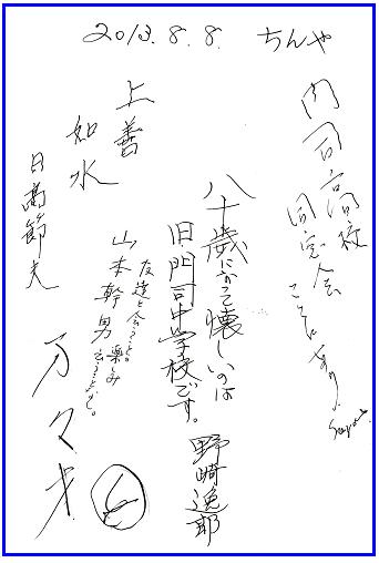 朝徘徊から帰宅。パソコンを開くと横浜のIN氏から、昨日の写真と寄せ書きが送られてきていた。