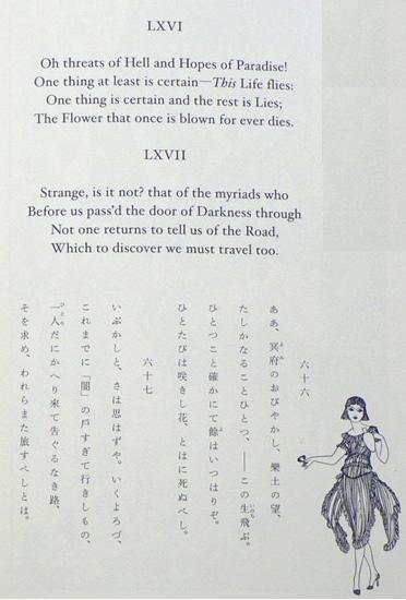 日本語版では、エドワード・フィッツジェラルド(1809-83年)による英訳版から蒲原有明が訳したのが最初で、『春鳥集』(本郷書院、明治38年)に収む。森亮訳で多く知られるようになった。