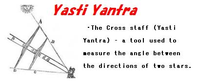 Bhāskara(バースカラ)2世は Yasti―yantra と呼ばれる測定器具を使っていた。単純な棒状になったり、V字型に変形させたりでき、定規と組み合わせて角度を測るのに主に使ったという。(左図参照)