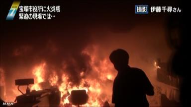 市長「暴力絶対許されない」:宝塚市の中川智子市長は、「火炎瓶が投げ込まれた場所には書類が多かったため、あっという間に燃え広がったと、現場にいた職員から聞いている。職員や市民を守りきれなくてつらい。暴力は絶対許されない。何があったか、しっかり検証していきたい」と話していました。