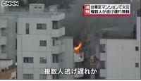 東京・台東区のマンションで火災 55歳女性が軽傷 ―― 東京・台東区の東武鉄道浅草駅近くのマンションで14日夕方、火災が発生し、55歳の女性が軽傷を負った。/14日午後4時半ごろ、台東区花川戸のマンションで「窓から火がでている」などと、119番通報があった。/この火事で、9階建てマンションの最上階の一室、およそ20平方メートルが焼け、この部屋に住む55歳の女性が煙を吸い込み、軽傷を負った。