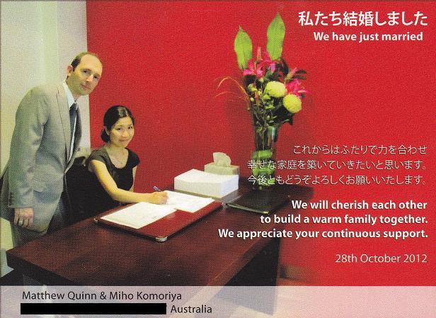 節夫おじさん、道子おばさん お元気ですか?/メールを頂きありがとうございます。/日本は、過ごしやすい秋が終わりの頃になってきているのでしょうか? /金婚式を迎えたとのことで、大変おめでとうございます。/マットのような人と巡り合えて私は、とても幸せです。/両親とは、遠く離れた土地で暮らし、大変親不孝な娘だと思いますが、出来る限り親孝行をしたいと思っています。