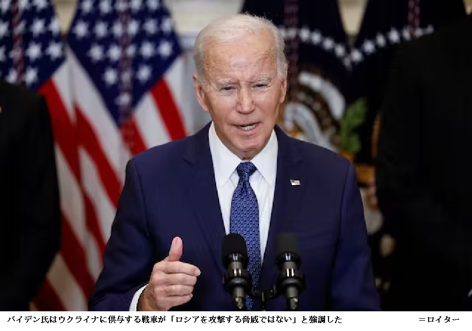 バイデン氏はロシアが戦力を増強しているとの認識を示し「ロシアに対抗できるようになる必要がある。機動力を向上させ、長期的にロシアの侵略を抑止し、防衛する能力が必要だ」と語った。エイブラムスがウクライナに届くまでには数カ月かかる見通しだ。