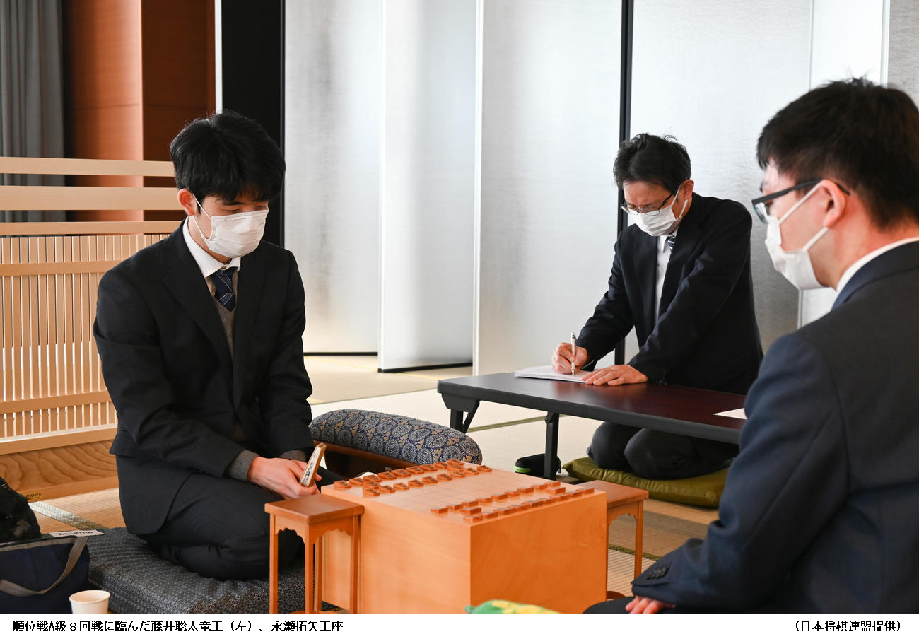 ここまで藤井は6勝1敗で、永瀬は4勝3敗。単独首位に立つ藤井は永瀬戦に勝てば、3月2日の最終9回戦を前にプレーオフ以上が確定する。2敗で斎藤慎太郎八段(29)、広瀬章人八段(36)、菅井竜也八段(30)の3人が追っており、斎藤は広瀬と、菅井は佐藤天彦九段(35)と対局している。