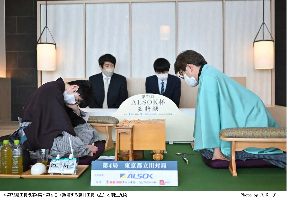 羽生善治九段、持ち時間2時間近く残して完勝!それでも「勝因は調べないと分からない」 ―― 将棋の第72期ALSOK杯王将戦7番勝負(スポーツニッポン新聞社ほか主催)第4局は、9、10の両日、東京都立川市の「SORANO HOTEL」で指され、羽生善治九段(52)が藤井聡太王将(20)=竜王、王位、叡王、棋聖含む5冠=に107手で勝利した。史上最年少5冠の若武者と永世7冠の資格を持つレジェンドによる世紀の対決で、羽生が2勝目。2勝2敗と再びタイに戻した。