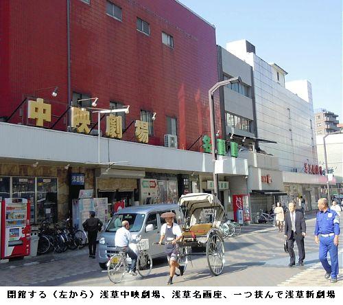 浅草から銀幕消える 映画館発祥の地、3舘が閉館 耐震化困難で ―― 日本の映画館発祥の地とされる東京・浅草で最後に残った「浅草名画座」「浅草新劇場」「浅草中映劇場」の3館が21日、閉館し、銀幕が消えた。浅草に初めて映画館ができて109年。最盛期は30館以上あったというが、テレビやレンタルビデオの普及で客離れが拡大。東日本大震災を受けて耐震化が急務となったが、資金が捻出できないことも追い打ちをかけた。