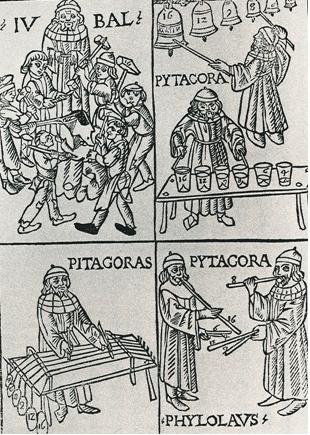 彼らは、弦の長さの比に注目して、2対1、3対2 のとき、2つの音が最も美しい協和音になることを発見した。現在、前者は完全8度、後者は完全5度の協和音といわれている。また、4対3 のときは、完全4度の協和音という。