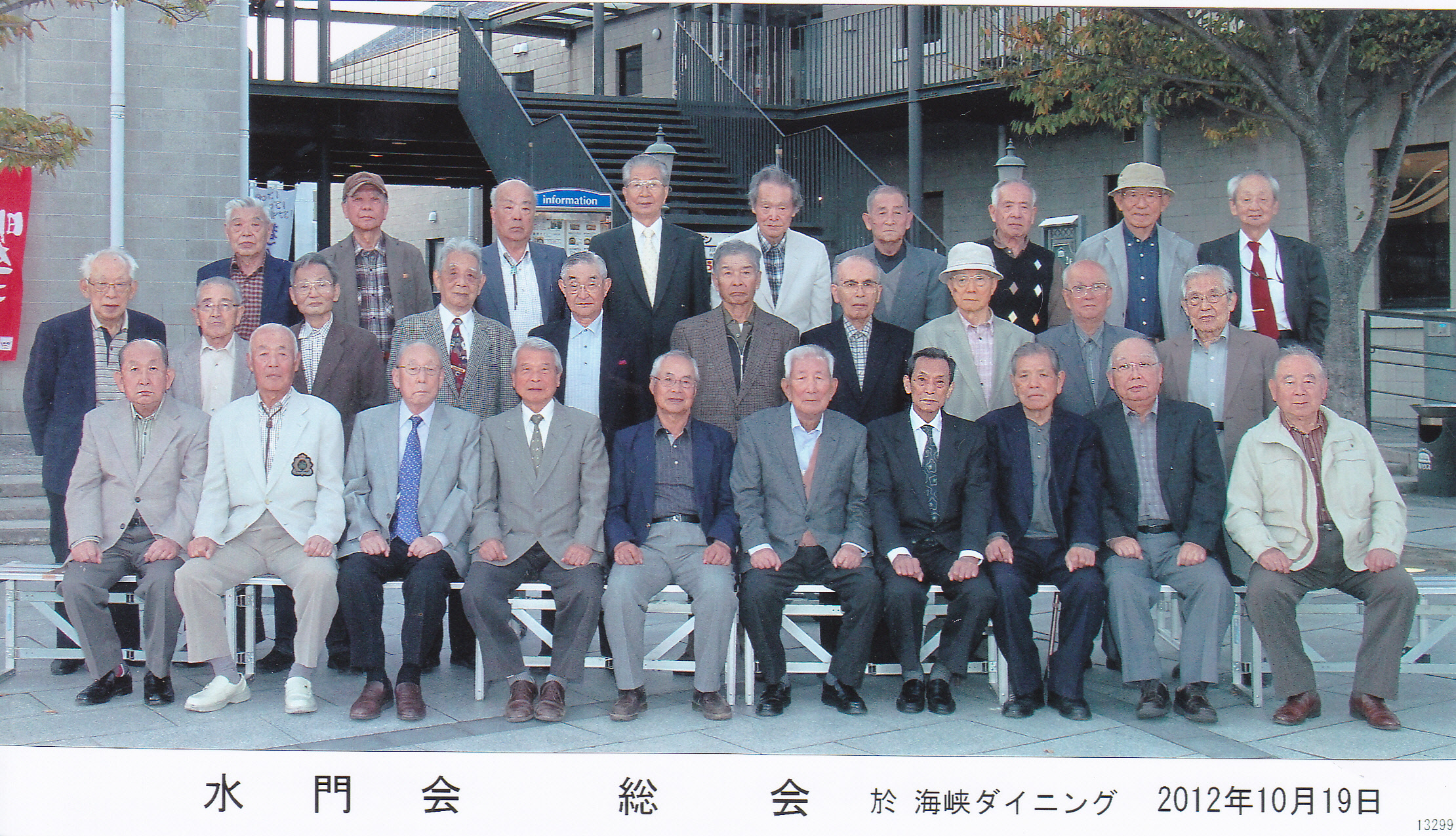 パソコンメールに曰く、「皆さんお元気でお過しのことと存じます。/西宮市在住のYK氏より、水門会総会の写真が送られてきました。/早速スキャンしましたので、皆様のお手許に貼付送信いたします。/まずは、写真送付まで 日高節夫」