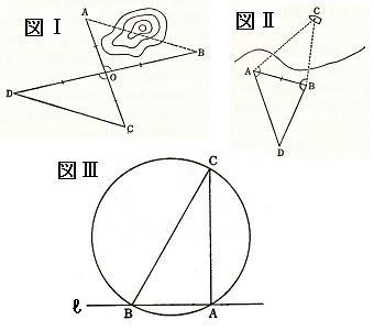 この点Aを通る任意の円を描いて、この円が直線ℓと再び交わる点をBとし、Bを通るこの円の直径の端をCとすれば、ACはℓに垂直である。(図Ⅲ参照)