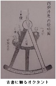 オクタント(octant):octant (八分儀)はラテン語の 8 を意味する octans に由来する。天体や物標の高度、水平方向の角度を測るための道具。測量や航海に用いられ、弧が45°(360°の八分の一)であるところからこの名がついた。測定には平面鏡の反射を利用しており、45°の弧に90°までの目盛りが書き込まれている。