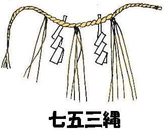 標縄、注連縄、七五三縄は3つとも「シメナワ」と読む。「標」は土地を占有するという印のことで、大和言葉を当ててシメとよむ。シメナワは神前、または神事を行なう場に不浄なものが出入りするのを禁ずるための印であり、これはことばの意味をあらわした字が用いられている。又、シメナワは水を注いで清め、つらねてはるもの。「注連縄」はそこから来た書き方。七五三縄は縄に垂らす藁の茎が七筋、五筋、三筋になっていることから来ている。