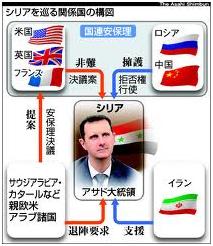 [社説]シリア監視団解散 停戦へ粘り強く糸口探れ ―― シリアの和平実現に大きな痛手である。国連シリア監視団(UNSMIS)の派遣期限が切れ、解散した。アサド政権と反体制派間の停戦発効を受けて派遣されたものの、武力衝突の激化で停戦監視活動は中止を余儀なくされ、役割を果たせぬまま4カ月で撤退に追い込まれた。/4月に派遣された監視団は、シリア問題で国連とアラブ連盟の合同特使を務めるアナン前国連事務総長が提案した停戦の履行を監視するのが目的だった。当初は効果が見られたが、戦闘の激化で監視団の車両が銃撃を受けるといった事態まで起きていた。/こうした中で6月に本格的な活動を停止した。任期切れとなった7月20日に期限の30日間延長を決め、事態を見守ってきたが状況は好転しなかった。監視団から犠牲者が出かねない状況のため撤退はやむを得ないが、そもそも非武装の要員約300人と言う態勢に限界があったことは否めない。国連平和維持活動〔PKO〕の歴史に残る失敗と言わざるを得ない。/シリアの混迷を深めた一因には国際社会の結束の乱れがある。国連安全保障理事会は弾圧を続けるアサド大統領の退陣を求める対シリア決議などを3度にわたって否決した。シリアと友好関係にあるロシアと中国が拒否権を行使したためだ。両国には重い責任がある。安保理が機能不全を克服しなくては今後も事態の打開は見通せまい。/イスラム教の宗派対立に根差す周辺国の対応も状況を複雑にしている。シーア派国家のイランがアサド政権を、スンニ派のサウジアラビアなどが反体制派を援助し、武器の調達などを支えているからだ。また、反体制派も一枚岩ではなく、各グループに特定の支援国がついている。一致結束して政権との交渉に向き合える状況にないこともマイナスに働いている。/監視団の解散を受け、国連は文民中心の連絡事務所を設置し、辞任するアナン氏の後任にブラヒミ元国連アフガニスタン特別代表が就く。新体制を国際社会が結束して支えていかねばならない。犠牲者をこれ以上増やさぬために、欧米諸国はアサド政権とより柔軟に向き合うことも状況に応じて必要となろう。/日本や欧米、アラブ諸国など有志国は「シリアの友人」会合を開き、手詰まり状況の打破を目指している。欧米と対立するロシアは、安保理の5常任理事国とシリア周辺国で構成する「連絡調整グループ」の大使級会合を呼び掛けた。さまざまなチャンネルを通して各国が解決の糸口を粘り強く探っていくほかない。/ 昨年3月に反政府デモが本格化して以来、シリア国内の死者は2万人に達するともいわれ、約25万人の難民が発生した。泥沼化する内戦状態を放置しておくわけにはいかない。監視団の失敗を踏まえ、国際社会の協調と責任ある行動があらためて求められる。 (山陽新聞 2012年8月21日)