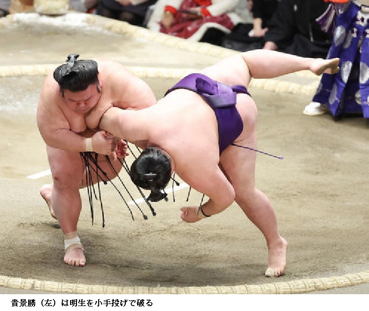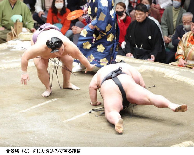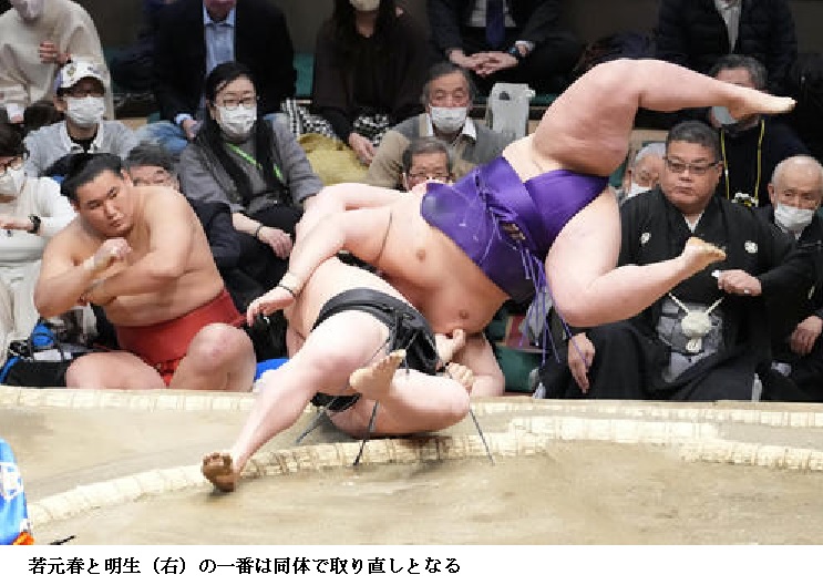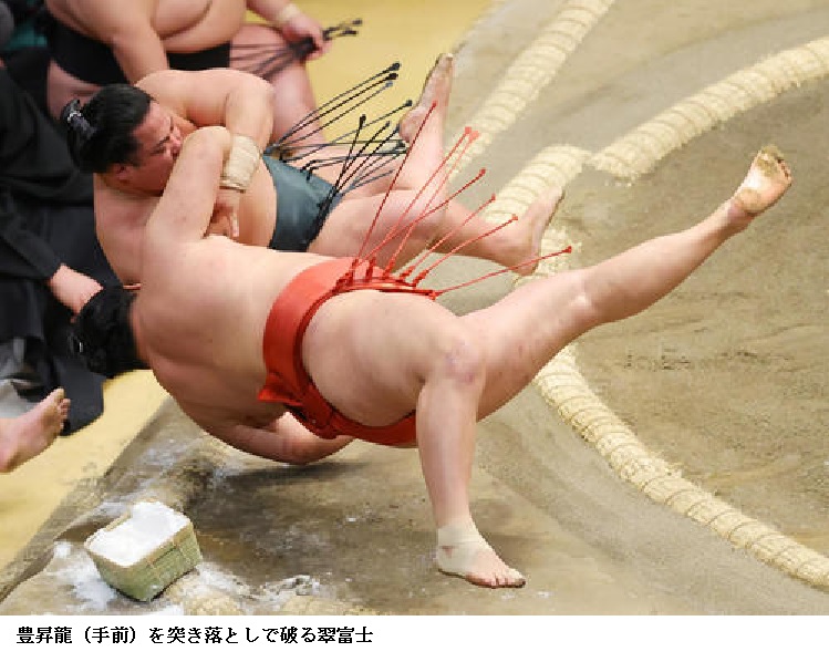 初日から4連勝だった関脇豊昇龍は過去1勝4敗と苦手にしていた翠富士と物言いがつく微妙な勝負で突き落としに敗れ、2連敗と後退した。 [日刊スポーツ 2023年1月13日22時20分]