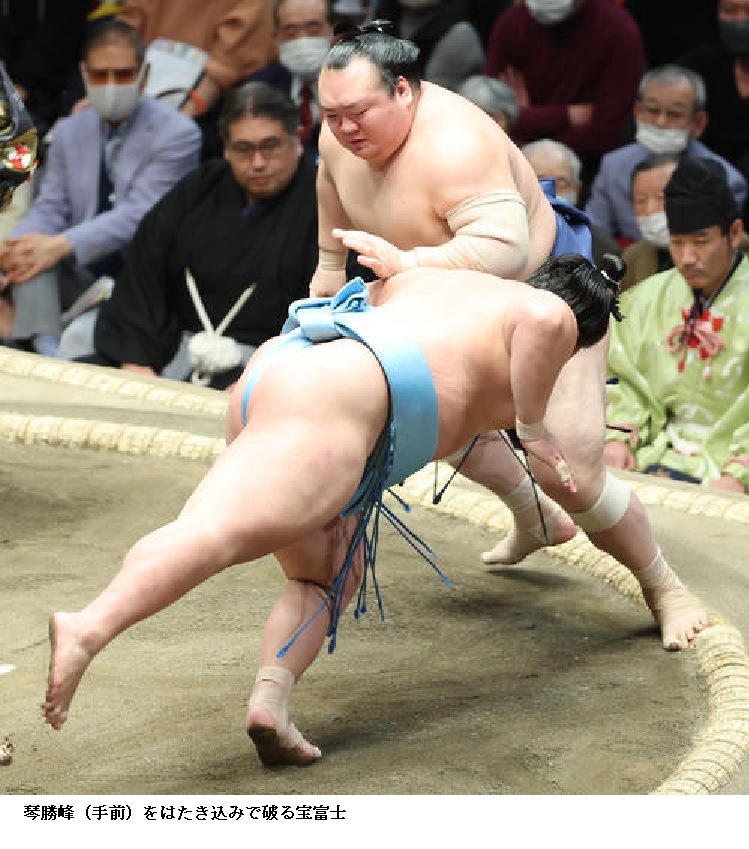 幕内下位で連勝の力士が相次いで黒星を喫した。東前頭13枚目琴勝峰は、宝富士にはたき込まれて初黒星を喫した。