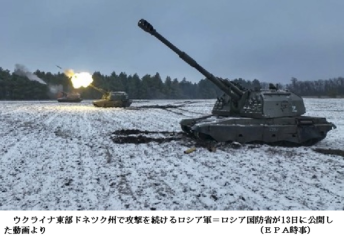 プーチン政権はドネツク州を含む東・南部4州の「併合」を一方的に宣言する中、全域を占領できているのはルガンスク州のみ。ロシア国防省は13日、ソレダル掌握はバフムトの包囲に道を開くと意義を強調した。3日間でウクライナ兵「700人以上」を殺害したとも主張した。