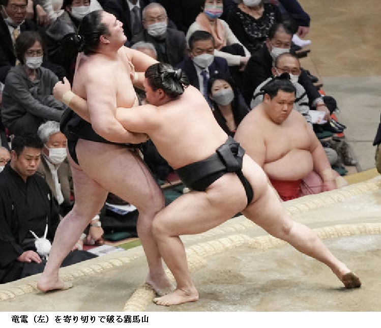 小結霧馬山は竜電を寄り切り、11勝まで星を伸ばして来場所の新関脇を濃厚にした。