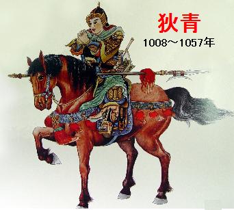 ※狄青〔1008~1057年〕は北宋の農民出身の将軍で、慎重寡言かつ機が熟すれば勇断という人となりと、兵卒より身を起こしたので、つねに士卒と飢寒労苦をともにする戦いぶりとで、将士の信頼も厚く、着実に戦勝を勝ち取っていったので北宋随一の名将とされた。タングヘート族の西夏と戦ったのは、仁宗の宝元年間〔1038~40年〕。儂智高の軍と戦ったのは皇祐四~五〔1052~53年〕で、この時、大越〔ベトナムの李朝の国号〕の国王李徳政が宋に援軍を送ろうと申し出たが、狄青は内乱鎮定に外国の援助を借りることはいけないと力説して反対し、宋軍の力だけで内乱を鎮定したのであった。宋庁の軍事を統べる最高機関である枢密院の長官〔枢密使〕になった。