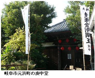 岐阜市元浜町の庚申堂、お色直し終わる ―― 岐阜城下町にある、戦国時代が起源の岐阜市元浜町の庚申(こうしん)堂のお色直しが終わった。くくりざるやつるしびななどの手芸品も堂内を飾り、初庚申の29日は午前10時からお勤めがある。/堂を守る美江寺観音(同市美江寺町)によると、1560(永禄3)年に斎藤道三の嫡男義龍が伝燈護国寺を建立。宗教騒乱「別伝の乱」で破却された後も堂は残り、延宝年間(1673~1681年)に東伝寺として再興された。現在は場所が少し南に移り、再建年代不明だが老朽化が激しいため、市の川原町地区の歴史的建造物群景観形成助成事業で昨年秋から屋根瓦を全面ふき替え、内部も畳を板敷きに改装した。/本尊青面金剛像と木造の三猿は年代物で、先人の信仰の厚さを物語る。手芸品は県生涯学習コーディネーターの山田マサ子さん(64)=同市中川原=が寄進。山田さんは「木挽町の地蔵寺、般若寺とともに城下町の三庚申参りを復活すれば町おこしになる。みんなで盛り上げたい」と話した。 (岐阜新聞web 2012年02月26日 11:20)