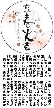 「日高 節夫 様/今日は節分ですが我が家では先ほど老父婦でささやかに真似事ながら豆まきをしました。/節分の今日は貴兄の誕生日、月並みだけど傘寿おめでとうございます。これからもまだまだ達者で過ごされたし。(夕方電話のときに言うのを忘れていました。)」