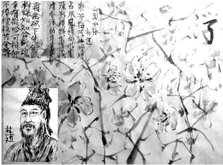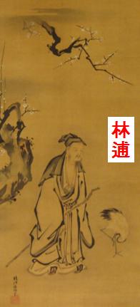 ※林逋〔967~1028年〕は、銭塘〔淅江省・杭州〕の人。独身で杭州西湖北岸に近い小島である孤山に隠居所を作り一生を終えた。梅300本を植え、鶴を飼う風流三昧の暮らしをしたが、詩人としてもすぐれ、人柄も清らかだったので、世人は「梅を妻とし鶴を子としている」といい尊敬した。和靖先生というのは仁宗が彼に賜った諡である。