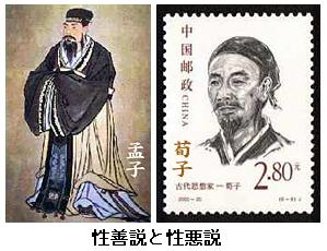 「告子は『人間の本性は善もなければ不善もない』と言い、ある人は『人間の本性は善をすることもできれば、不善をすることも出来る。だから文王・武王のような聖王が現れれば人民はみな善を好むようになり、幽王・厲王のような暴君が現れれば人民はみな乱暴なことを好むようになる』と言っております。また別の人は『本性の善い人もいれば善くない人もいる。だから聖天子尭の下にも象〔しょう、舜の異母弟〕のような悪人が出、瞽瞍〔こそう、舜の父〕のような悪人の子にも舜のような聖人が顕れ、また兄の子に紂王のような悪人を持ち、かつそれを君主としながら微子啓(びしけん)や、王子比干(ひかん)のような賢人が現れたのだ』と言います。ところが、先生は『人間の本性は善だ』とおっしゃるのですが、これらの意見はみな間違いでございますか」