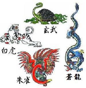 東方は木でそこにある星座は蒼龍である。西方は金で、そこにある星座は白虎である。南方は火で、そこにある星座は朱雀〔鳳凰のこと〕である。北方は水でそこにある星座は玄武〔亀のこと〕である。天に四星の精があり、それがくだって四獣の体を生じたのだが、血の通っている動物では、この四獣が長なのである。四獣はもっとも顕著に五行の気を含んでいるのだが、思うに龍と虎は互いにせめぎあいはしないし、鳥と亀もけっして損ねあいはせぬ。このように,四獣でもって験(しょうこ)を調べてみたり、十二支の動物で効(あかし)をたててみるに、五行の動物がその気と性によってやりあうというのは、まったくそぐわないことだ。