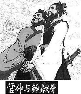 管仲夷吾(仲は字、夷吾は名)は、頴水のほとりの人である。若い頃、常に鮑叔芽と交友した。鮑叔は管仲の賢才を知っていた。管仲は貧しくて生活に苦しみ、いつも鮑叔をあざむいたが、鮑叔は終始好意を持って遇し、欺かれたことについてとやかく言わなかった。その後、鮑叔は斉の公子小白(しょうはく)に仕え、管仲は公子糾(きゅう)に仕えた。小白が立って桓公となるにおよんで、これと争った公子糾は死んで管仲は囚われの身となった。ときに、鮑叔は桓公に管仲を推薦した。こうして、管仲は登用されて斉の政治に当たり、桓公は覇者となった。斉が諸侯を九合して天下の政治を正したのは、管仲の謀に依ったのである。