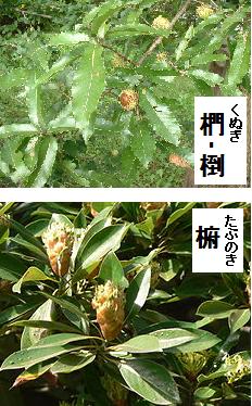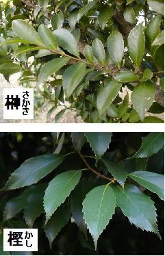 榊(さかき)は神前に捧げる木という意であり、樫(かし)は堅い木の意。