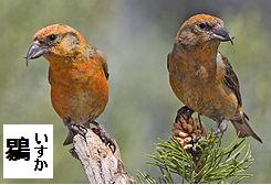 漢字の易には、「いきちがう」といういをもつという。鶍(いすか)はスズメ科の小鳥であるが、針葉樹の実を食べやすいように上下の嘴が食い違っているため、易と鳥を組み合わせて作られた国字である。鶫(つぐみ)は漢字の鶇(トウ・つぐみ)に似せて作った国字だという。